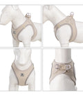2 .【Easy to use & Quick release】- Our Step-in harness is very easy to put on and take off with the fast-release safety buckle. Put the dog's front feet into the holes, close the magic tape fastener, then snap the buckle, attach the leash to D-rings, finished.