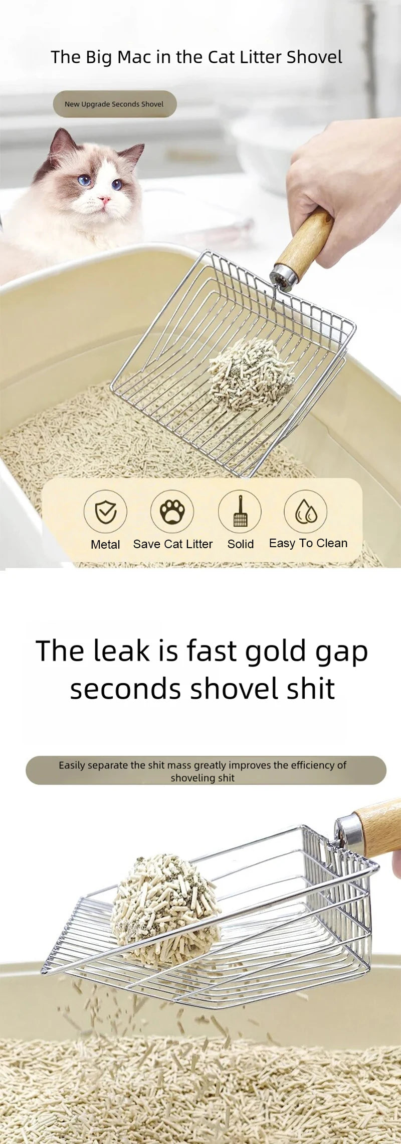 Pet Dung Shovel Stainless Steel Cat Litter Shovel Pet Cleaning Tool Cat Litter Spoon Stainless Steel Durable Handle